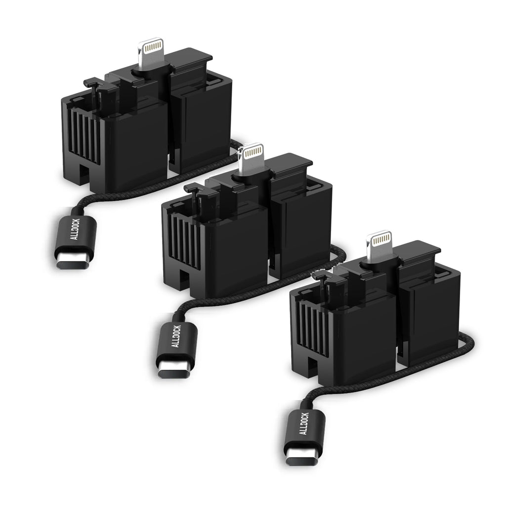 Allows you to dock up to 3 devices with just one hand. You can slip your smartphone or tablet into the ALLDOCK without adjusting the cables underneath.